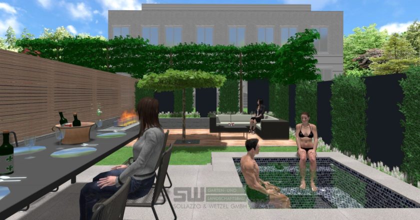 Setzen eines Fertigbeckens in Ratingen. Das Becken kam fertig verrohrt aus dem Werk zur Baustelle...
